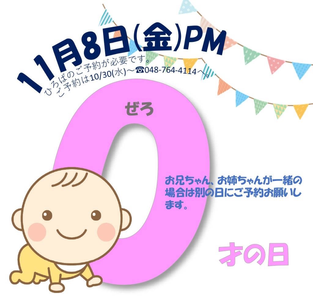 11月8日(金)の午後のひろばは0才の日です。ご利用に予約が必要です。ご予約は10月30日(水)からとなります。