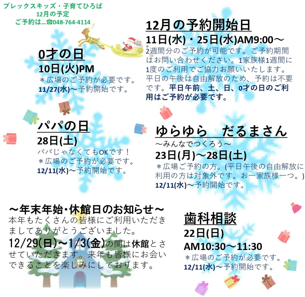 子育てひろばの2024年12月の予定です。ぜひご参加をお待ちしています!