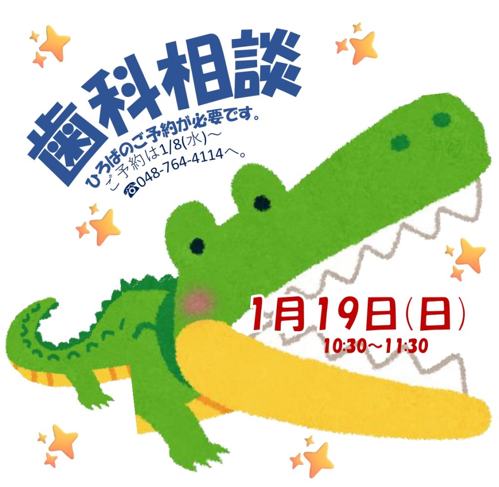 1月19日(日)10:30~11:30は歯科相談の日です。ご相談にはひろばのご予約(1月8日(水)~)が必要となります。
