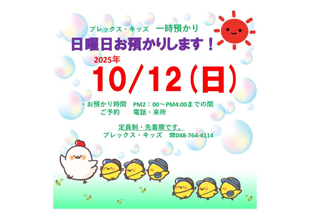 2025年10月の日曜日一時預かり