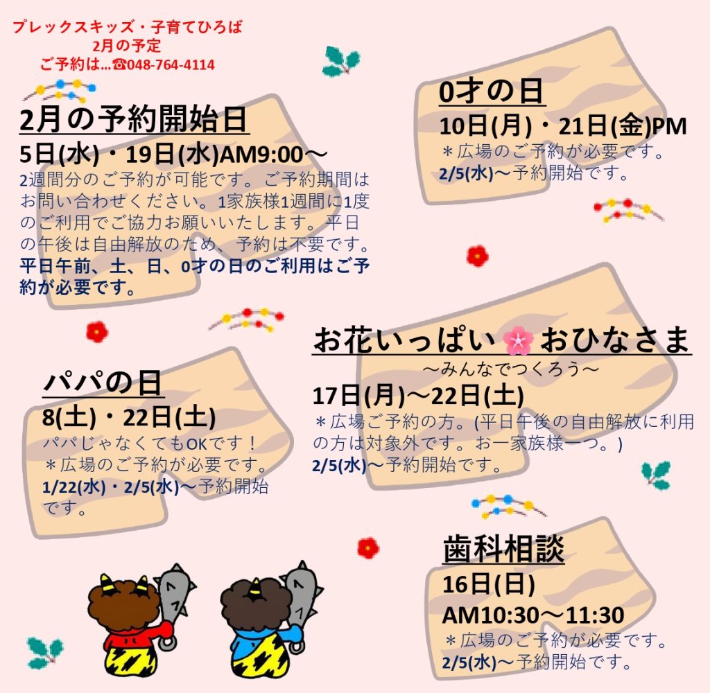 2025年2月のプレックスキッズ・子育てひろばの予定です。