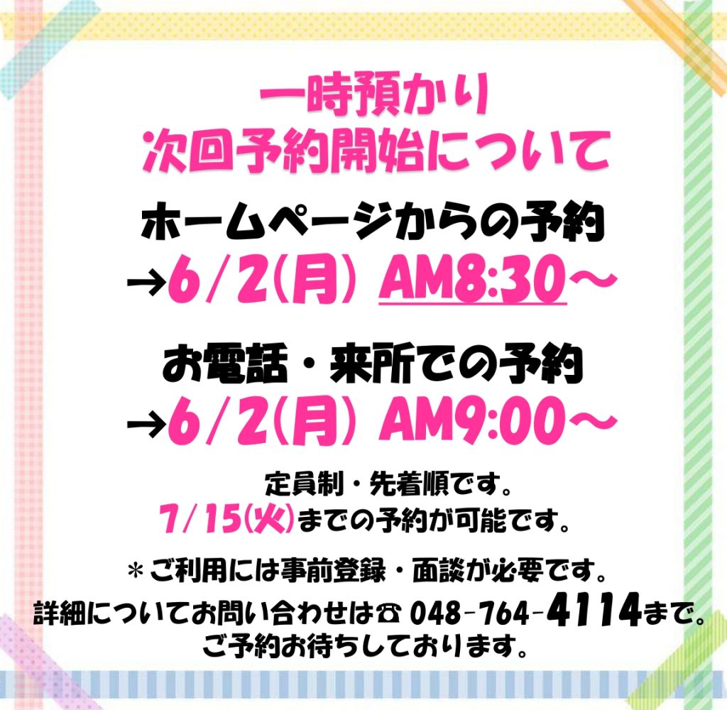2025年7月1日~15日の一時預かり予約開始日のお知らせです。