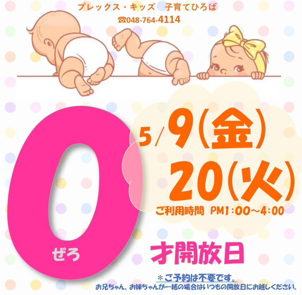 5月9日・20日の13時~16時は0才開放日です。予約は不要です。