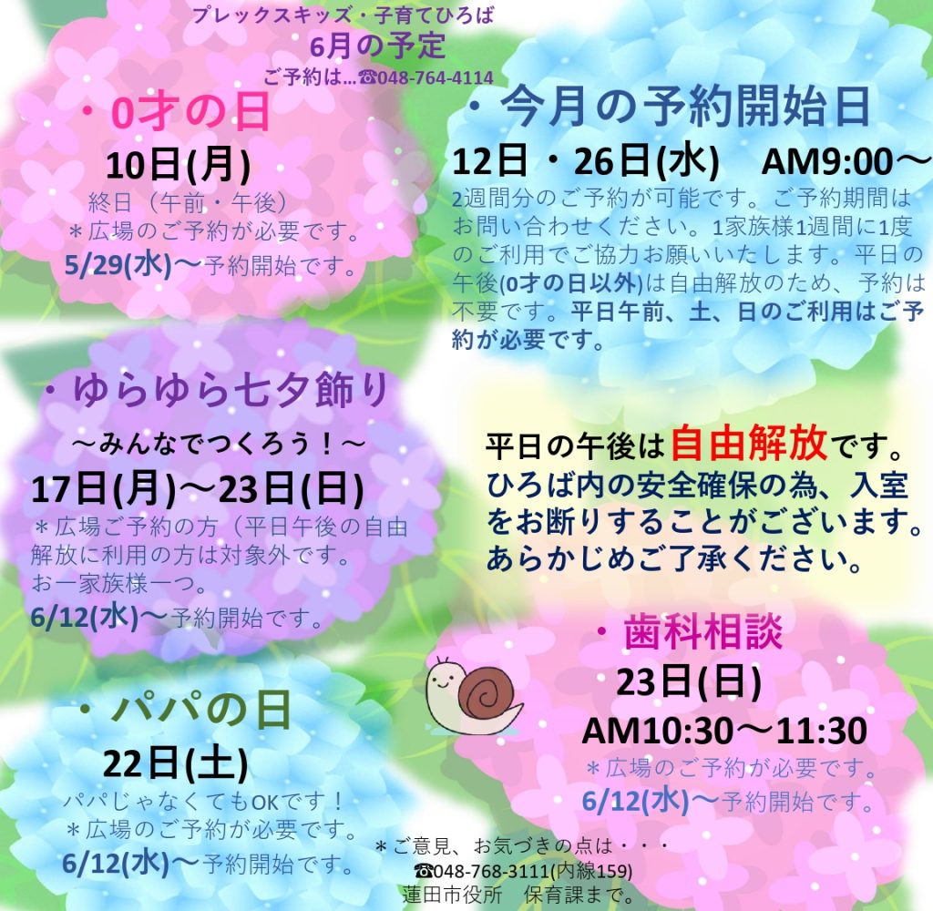 6月のひろばの予定をご案内致します。