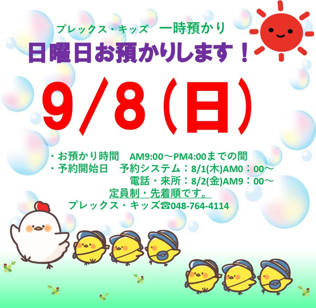 9月8日(日)一時預かり実施